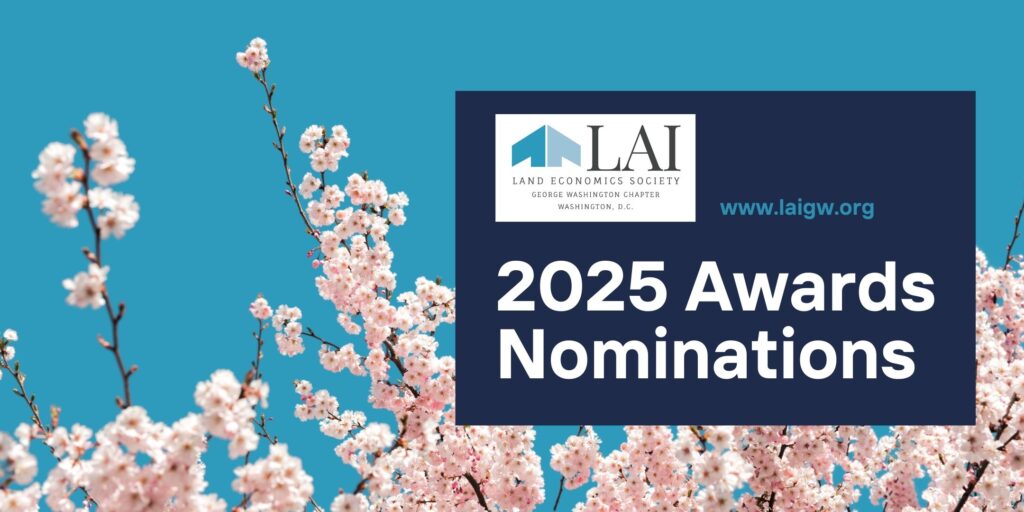 The Lambda Alpha International – George Washington Chapter Awards Program recognizes the accomplishments of members and individuals who advance the field of land economics through professional achievement, service, and contributions to the Greater Washington community.